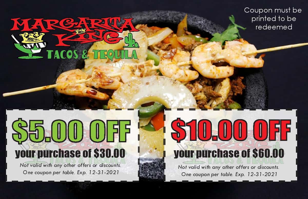 10 Off 60 Or More Coupons Margarita King Mexican Grill Cantina Mexican Restaurant